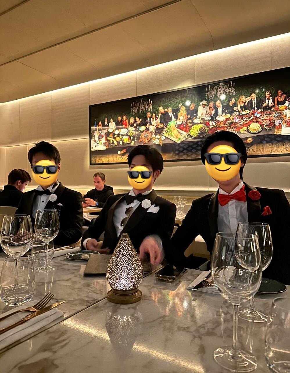 真ん中の男がフォーマルにグラサンさしてるの草