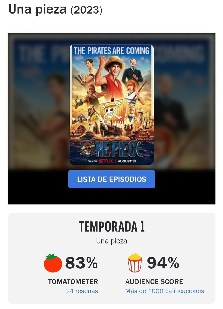 ワンピの規模で1000しかないのは少ないよせめて1万はないとあと日本アニメ関連で94%はトマトとしては弱いぞ
