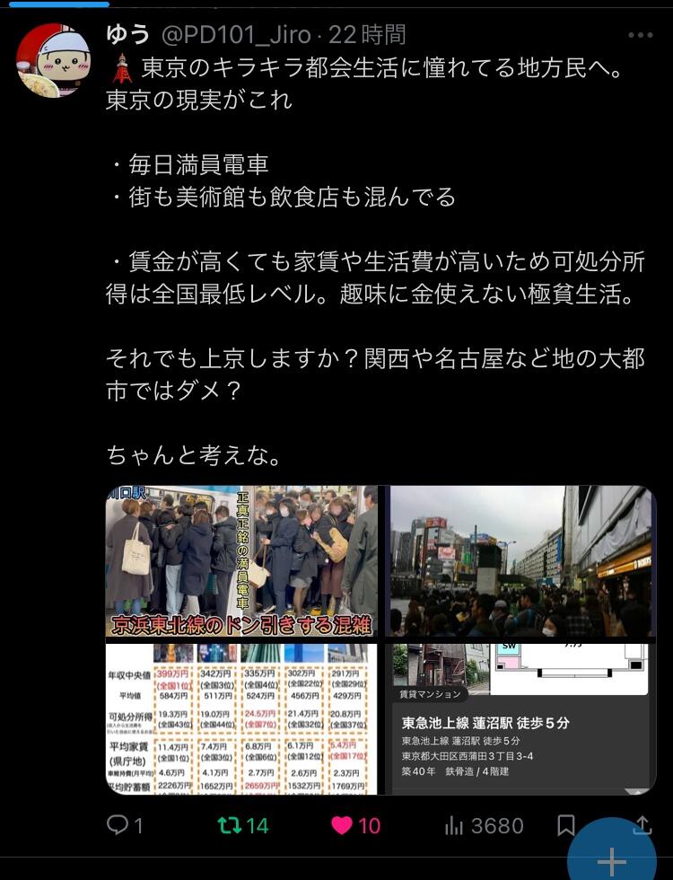 東京のキラキラ都会に憧れてる地方民へ。東京の現実がこれ