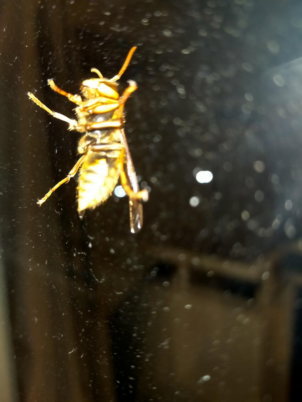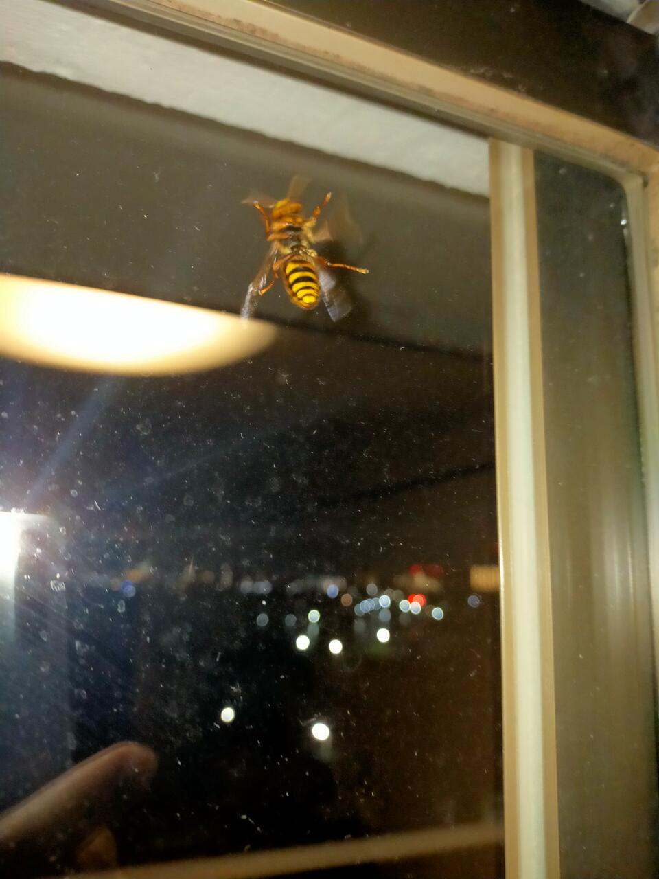 軒にできたキイロスズメバチの巣を壊滅させるし