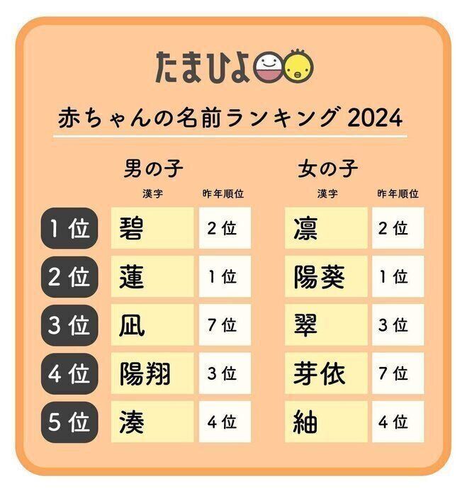「たまひよ」では、2005年から毎年、赤ちゃんの名前に関する調査を実施しており、このたび「たまひよ 赤ちゃんの名前ランキング2024」